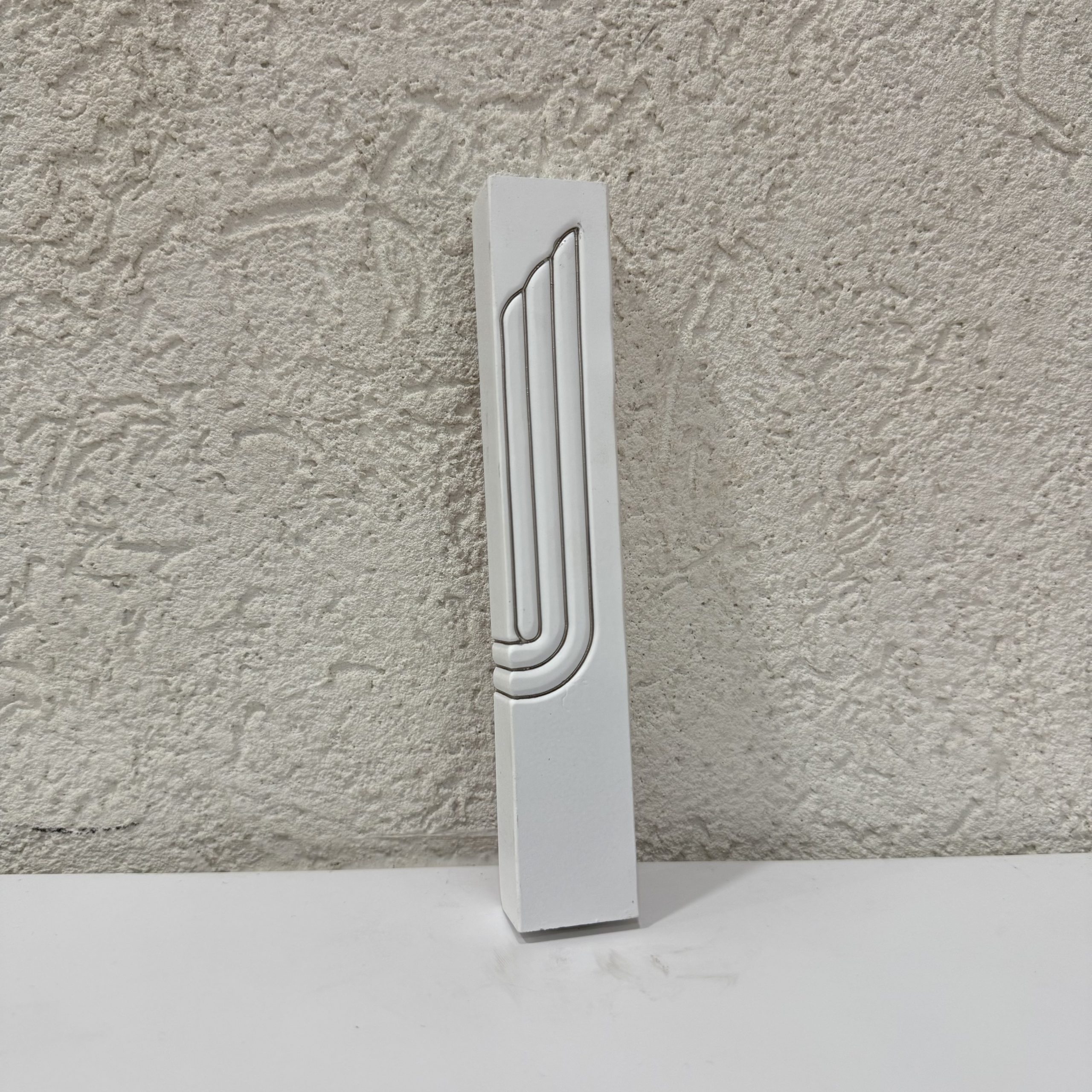 בית המזוזה עשוי מבטון בעיצוב "ש" מיוחדת בגוון זהב ולבן השילוב המנצח.