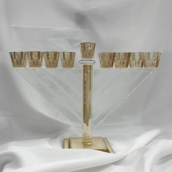 חנוכיית קריסטל יוקרתית בשילוב צבעי זהב עדינים.