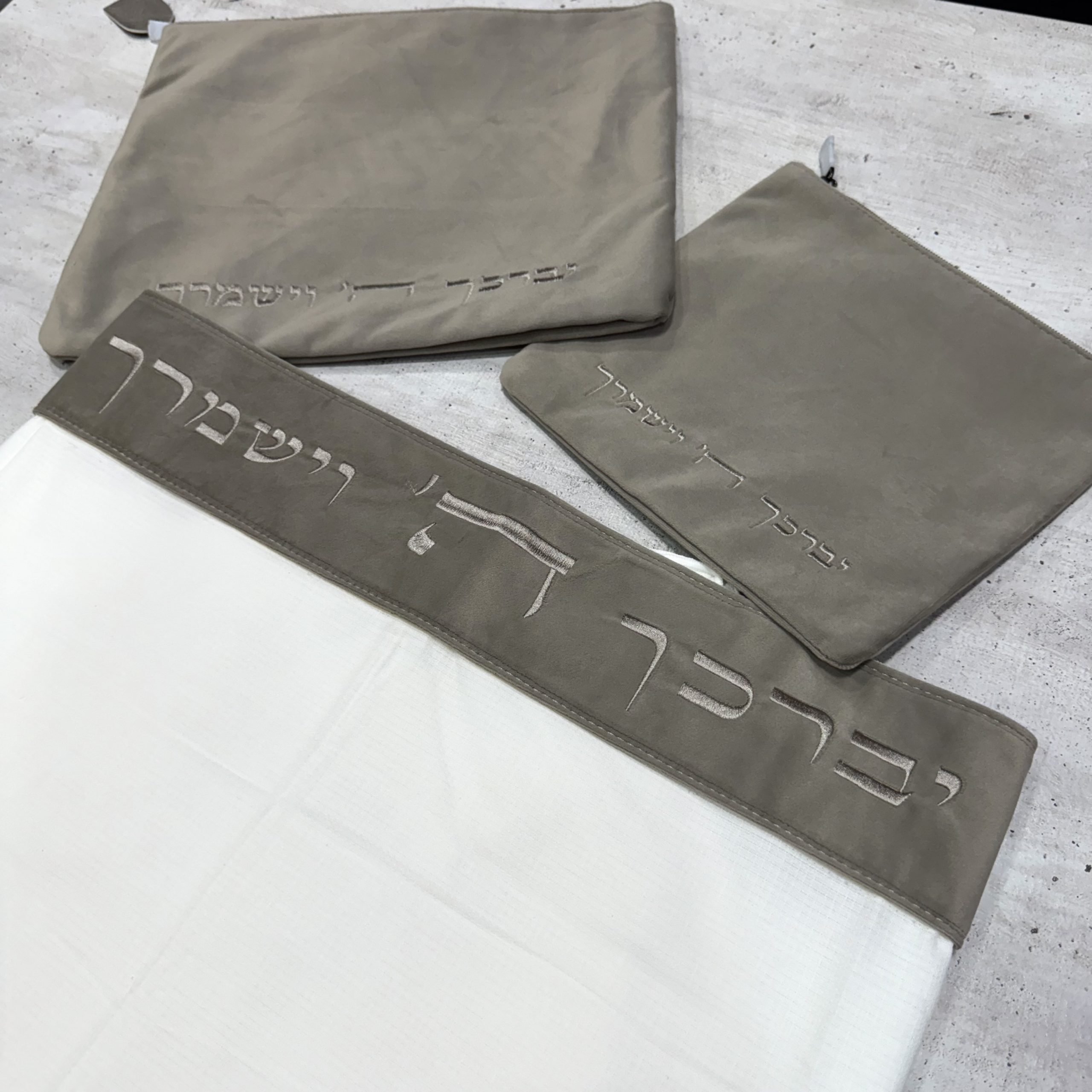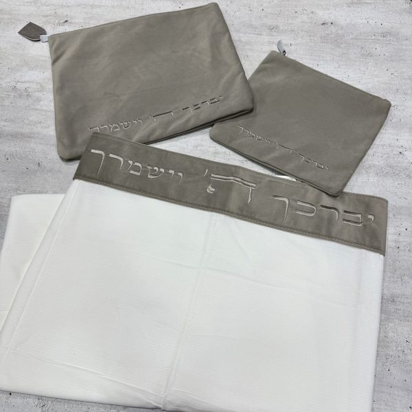 – סט כיסויים לטלית ולתפילין קטיפה-זמש רקמה "ברכת הכהנים" בתוספת רקמת שם.