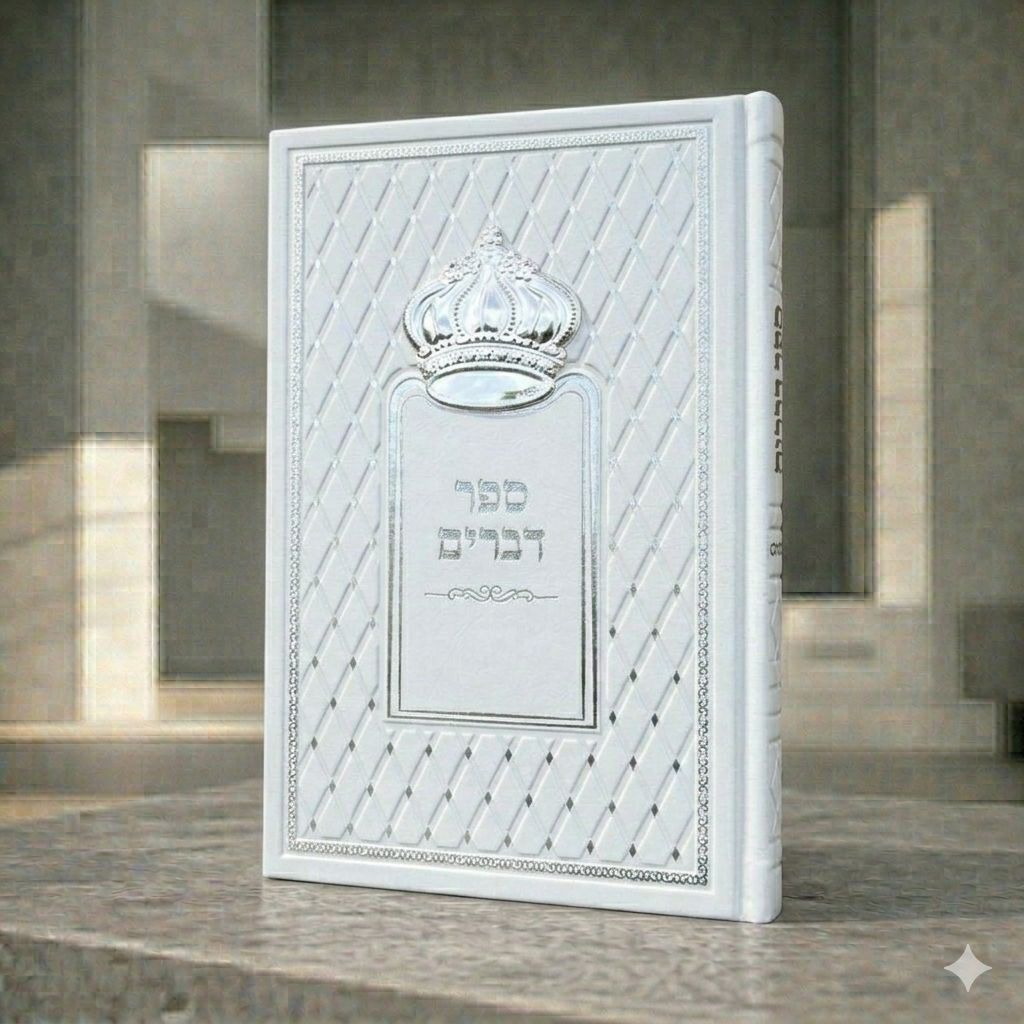עשוי מכריכת דמוי עור בצבע לבן וכתר ציפוי כסף.