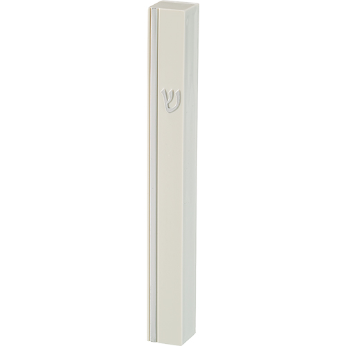 בית מזוזה לחדר בעיצוב קלאסי לבן עם פס כסף.