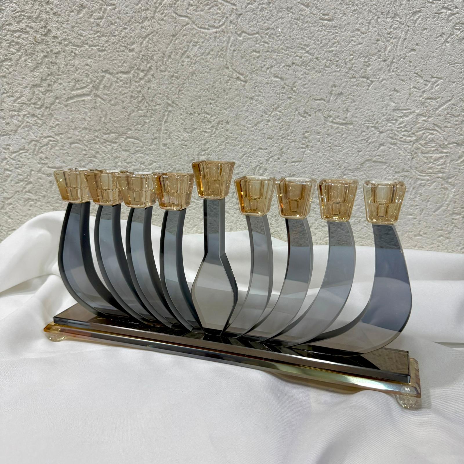 חנוכיה יוקרתית עשויה קריסטל גווני שחור וזהב.